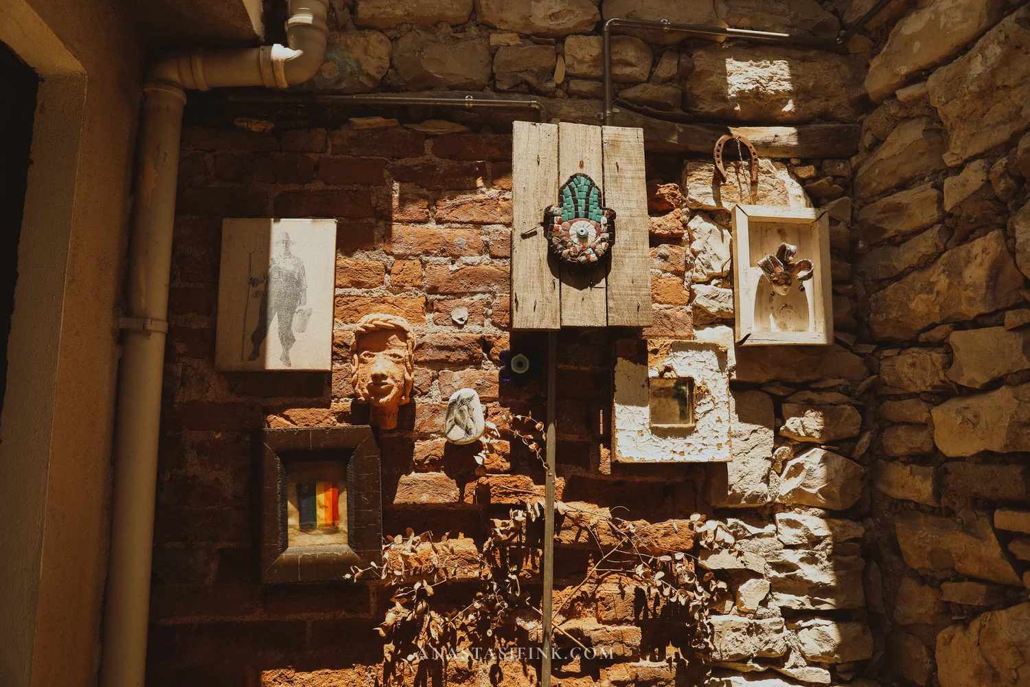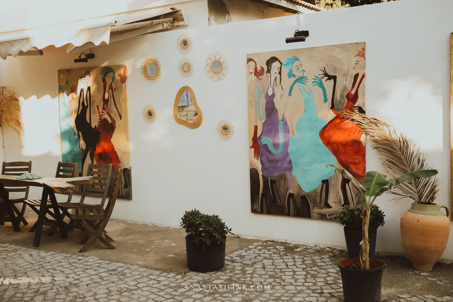 Murals are everywhere in Urla. Old buildings are painted with grapes and trees, walls display small frames with miniatures and ceramics.