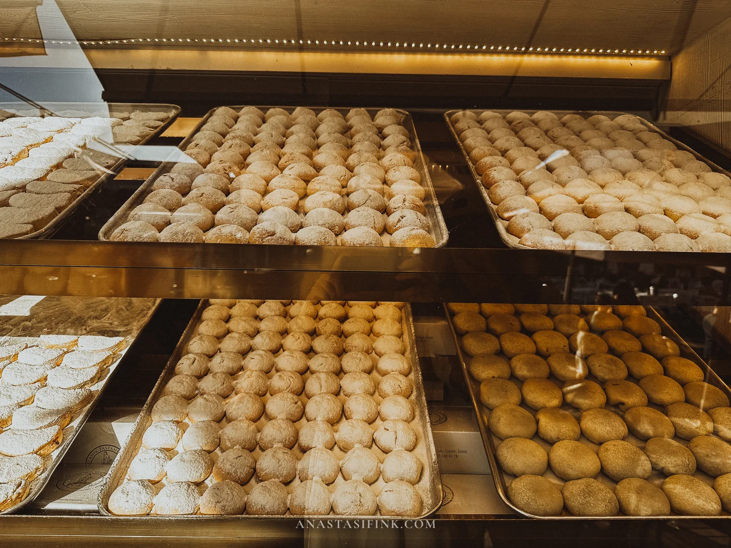 At the entrance to Alaçatı, opposite the windmills, stands the bakery-shop Alaçatı Selanik Pastanesi 1945. A family business founded by settlers from Thessaloniki (Selanik is the Turkish name for Thessaloniki). They specialize in jams, cookies, and everything mastic: mastic ice cream, mastic pudding, mastic cookies.