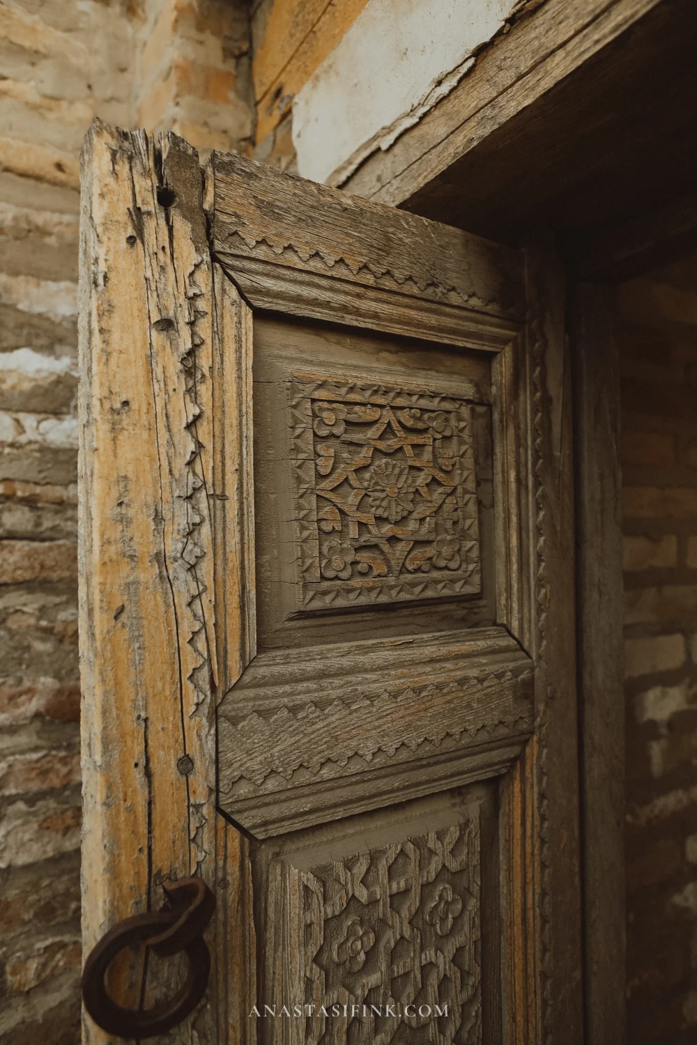 The gravestones deserve their own paragraph. There are hundreds of them in Chor-Bakr — from plain stone slabs to tall black steles covered in carving and calligraphy. The oldest ones have been polished by time to a mirror shine. Some portals still have original wooden doors from the 17th–18th centuries: forged iron rings, hand carving, dried-out boards.