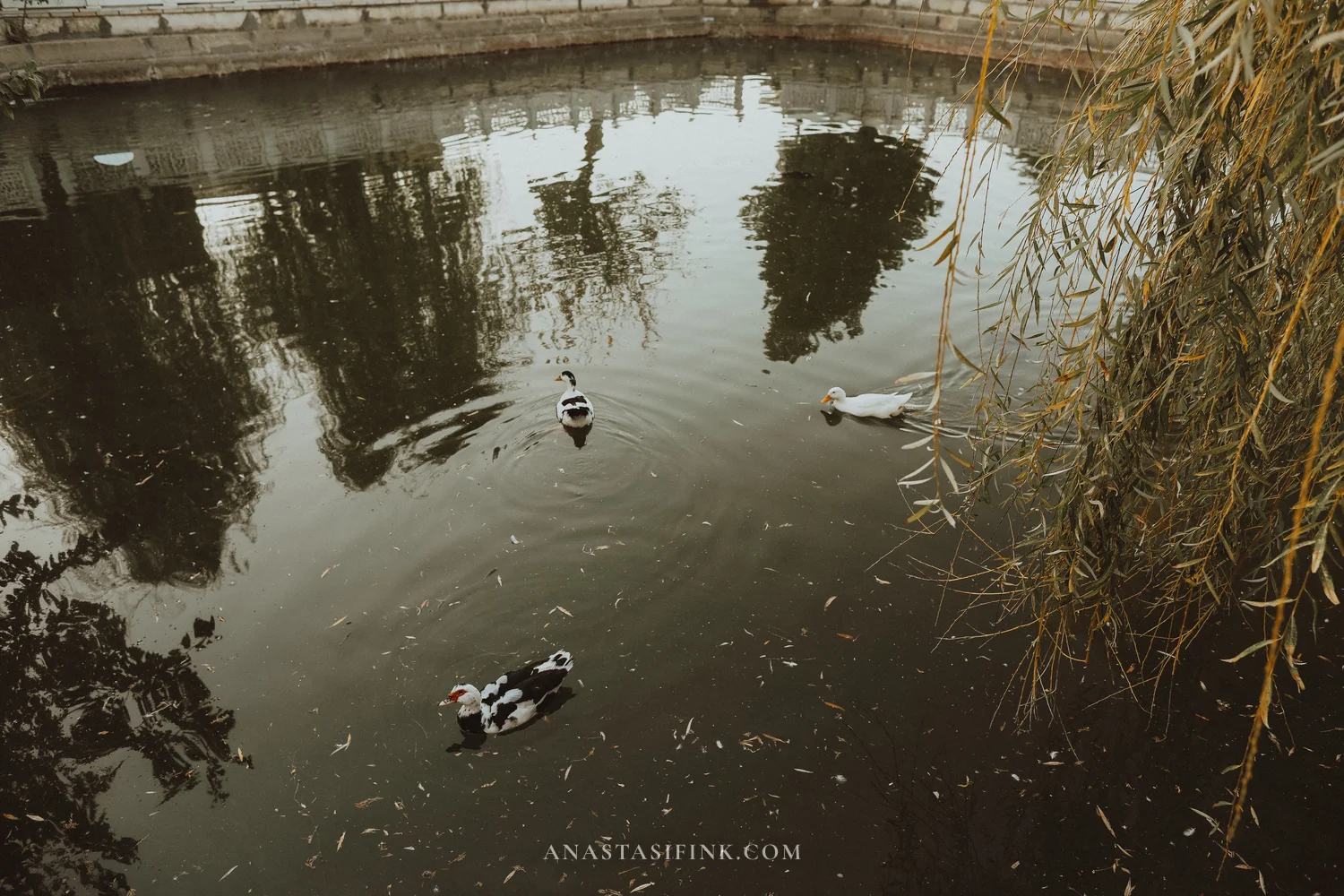 From a few elevated khaziras you get a view over the old city — a turquoise dome of one of Bukhara’s mosques rises above the rooftops. It’s a useful reminder that Chor-Bakr is a suburb, not the middle of nowhere. Part of the territory is a garden: plane trees, mulberries, elms — in autumn the leaves turn gold. Right by the outer wall there’s a duck pond — a good place to sit for ten minutes before you leave.