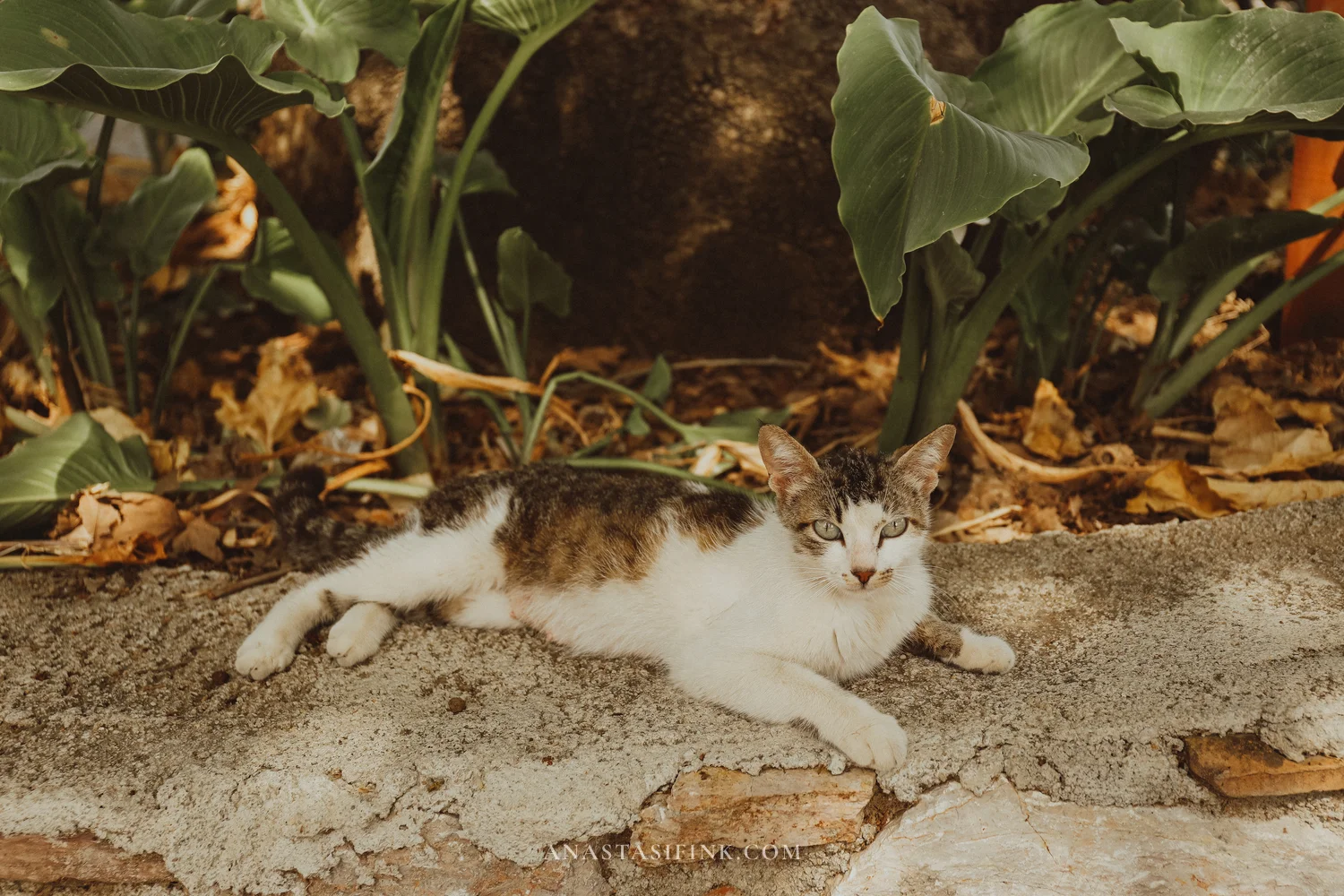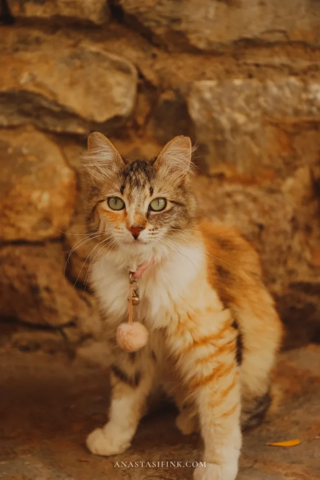 There are cats everywhere. They lie in the shade, pose for photos, and don’t budge even if you walk right up to them.