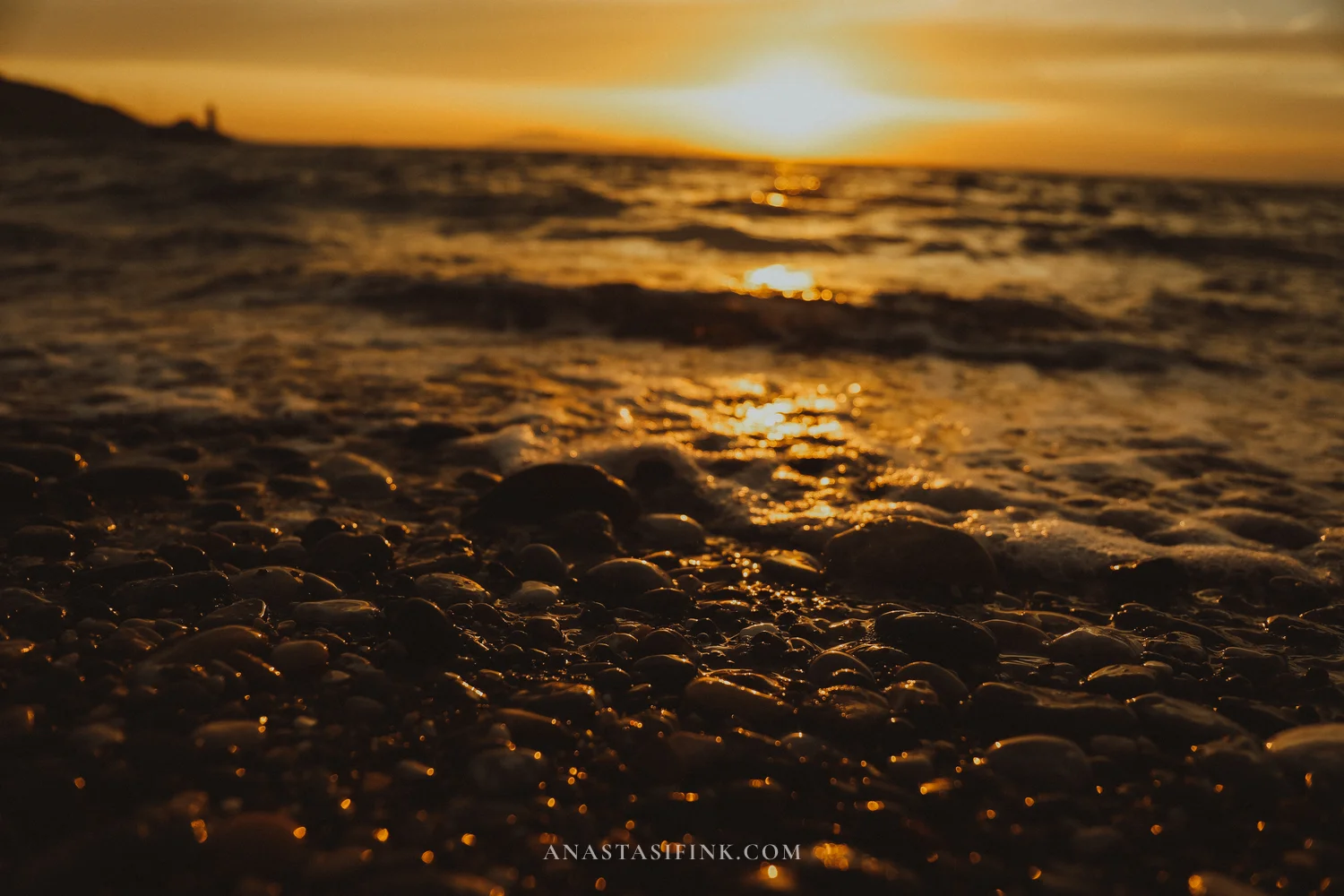 We wrapped up the day on a beach on the north side of the peninsula. I picked this spot on purpose — in June, the sun sets right there, straight into the sea. We arrived around 19:30, sat down on the pebbles, and just watched.