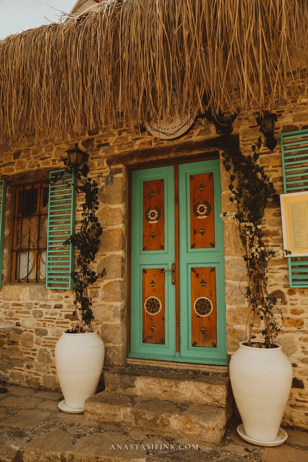 Every door here is different. Some are old wooden ones with wrought-iron ring knockers. Others have been freshly restored and painted turquoise or green, with matching shutters.
