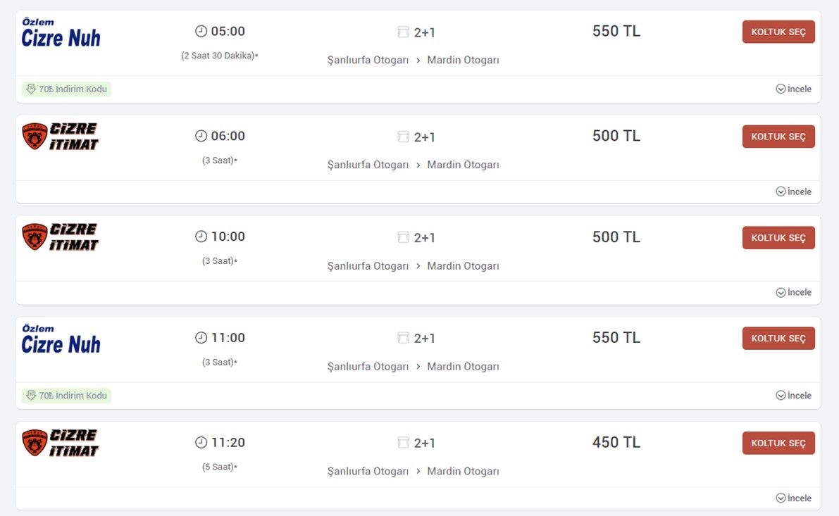 Le trajet en bus entre Şanlıurfa et Mardin dure environ 2,5 à 3 heures. Comme le premier bus, cet itinéraire peut également avoir des trajets plus longs en raison d’un itinéraire légèrement différent avec plus d’arrêts.