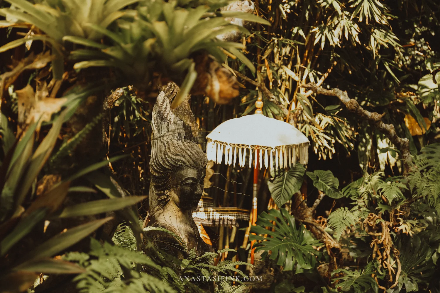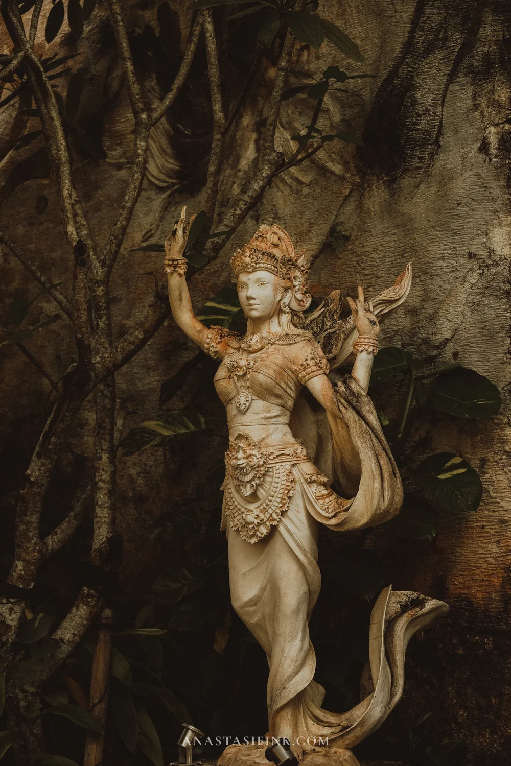 The poses on the statues felt familiar — I’d seen them at dance evenings in Ubud. Splayed fingers, wide-open eyes, foot pointed.