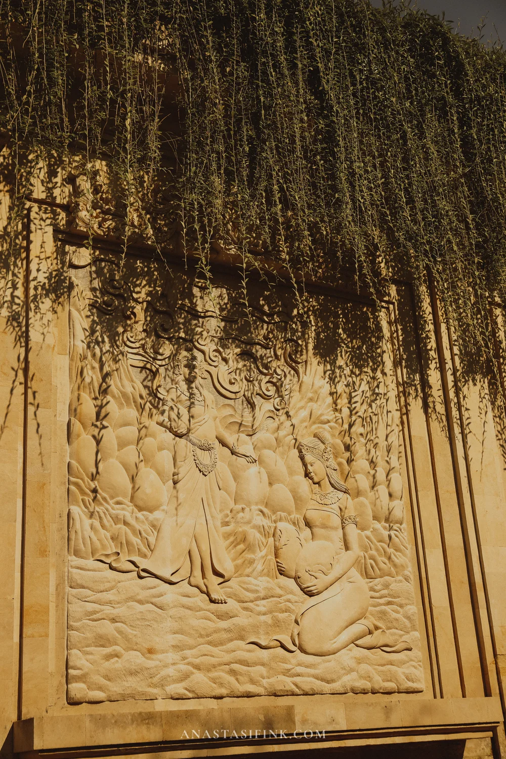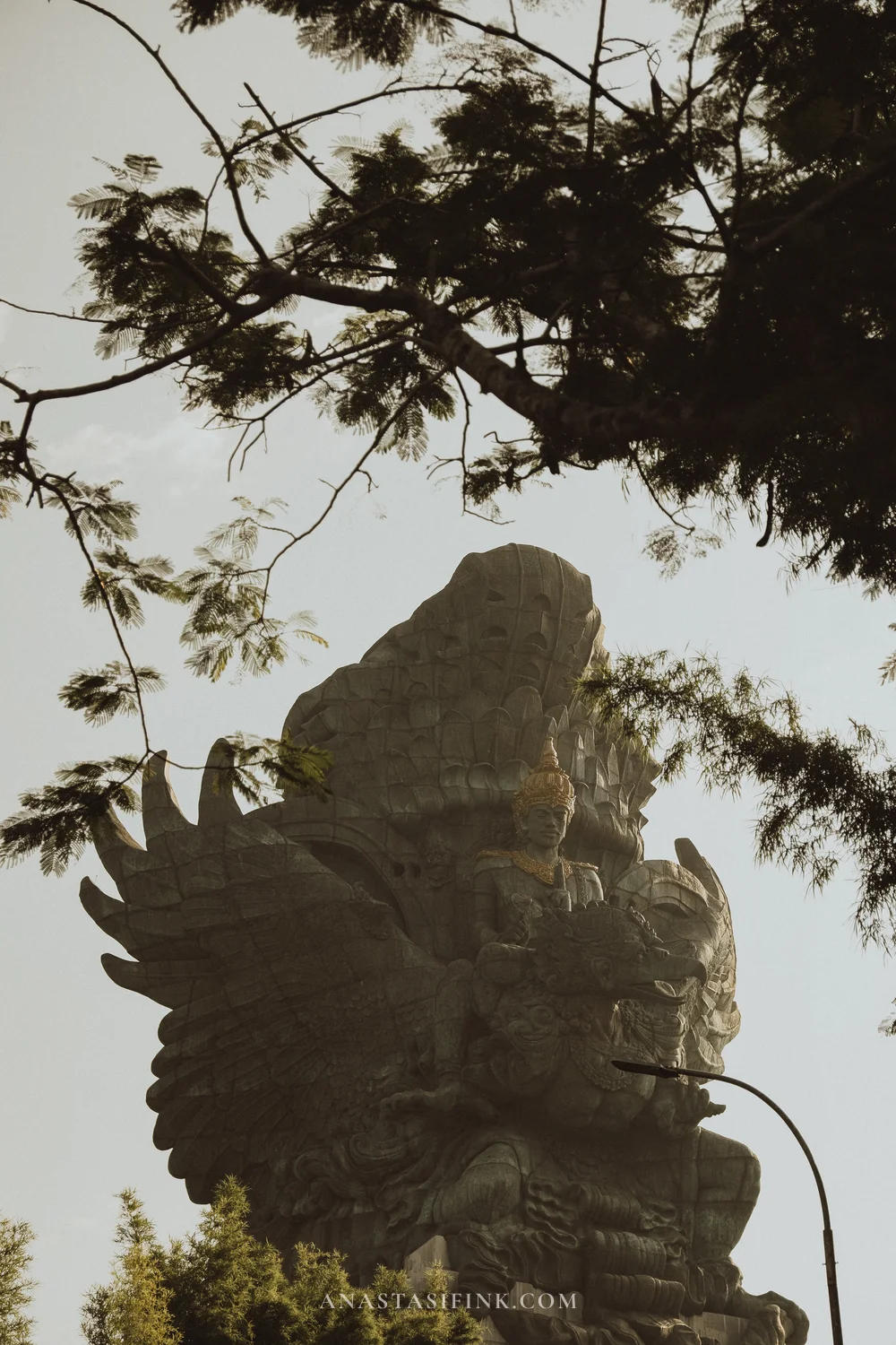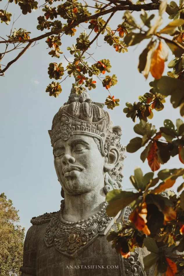 The statue is the work of Balinese sculptor Nyoman Nuarta. He dreamt it up in the early 1990s, but it took almost 30 years to build and only opened in the fall of 2018. The result: 121 meters tall, made of copper and brass on a steel frame — one of the tallest statues in the world. The scene depicts Vishnu, the Hindu protector god, riding the giant bird Garuda. It’s a moment from the Mahabharata.