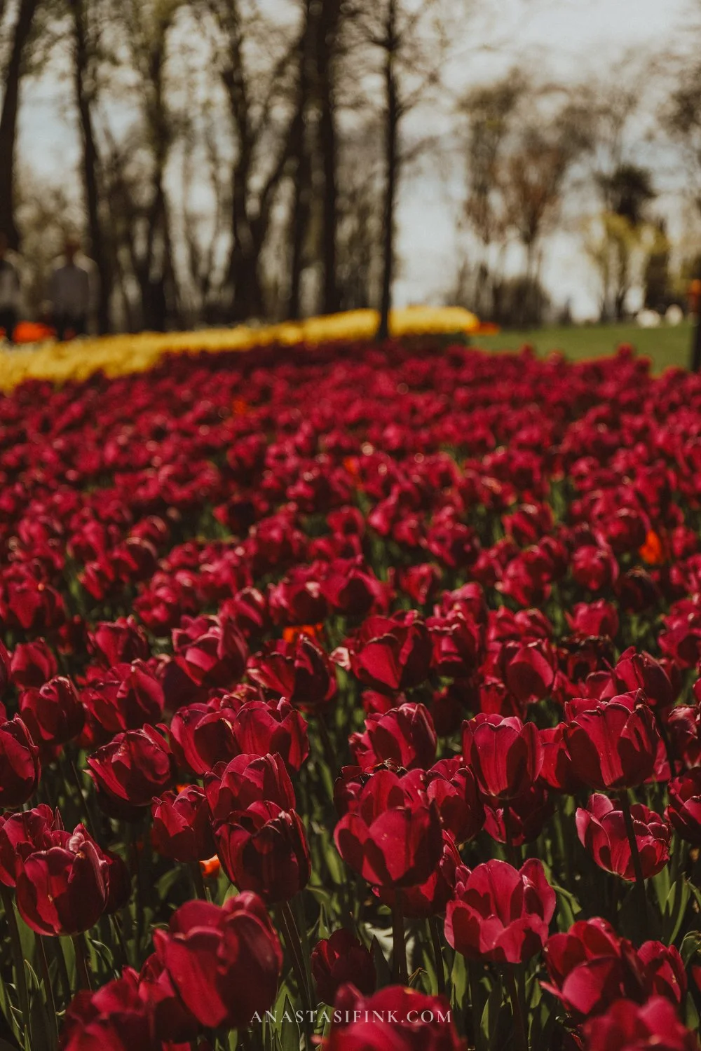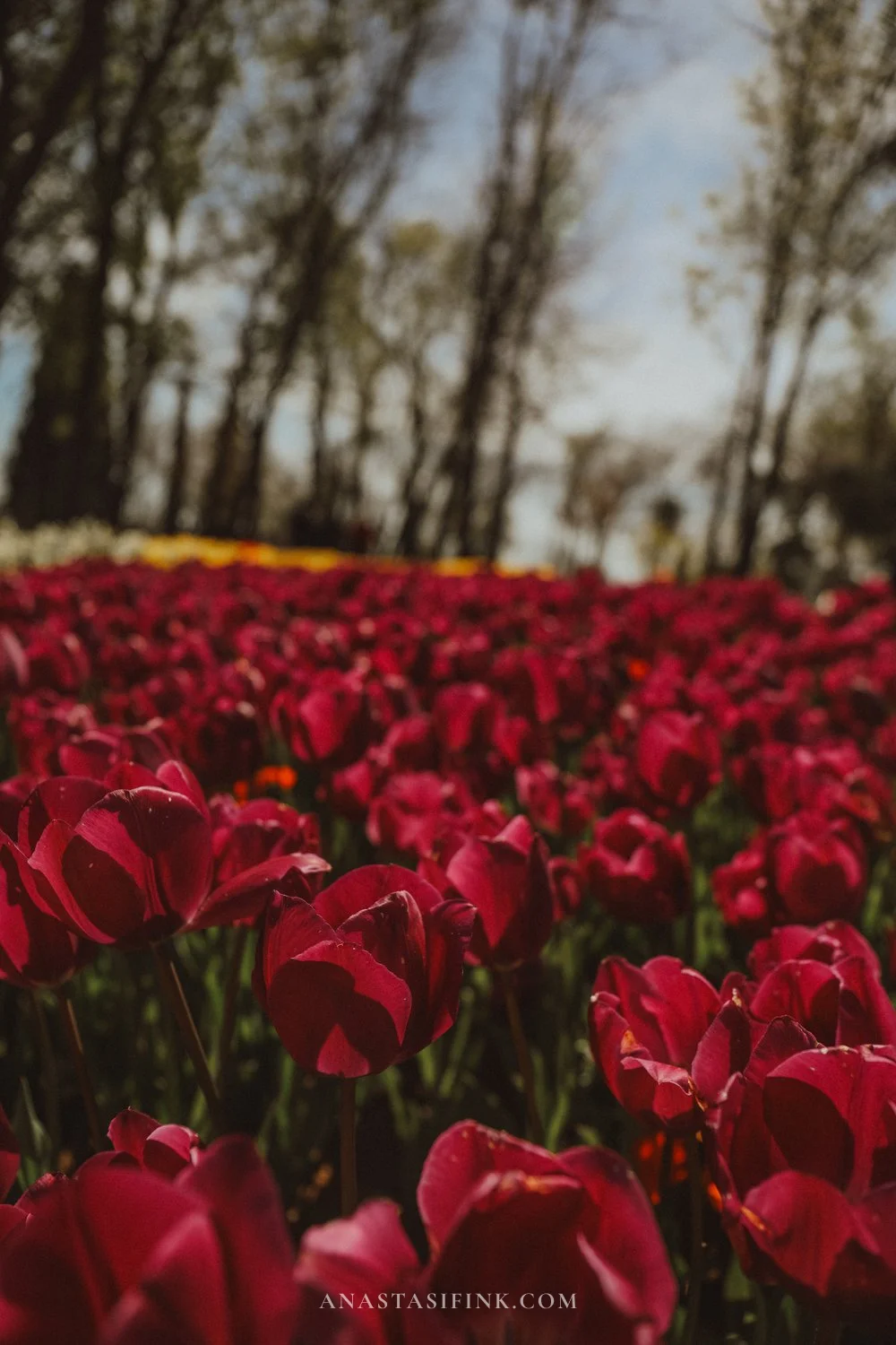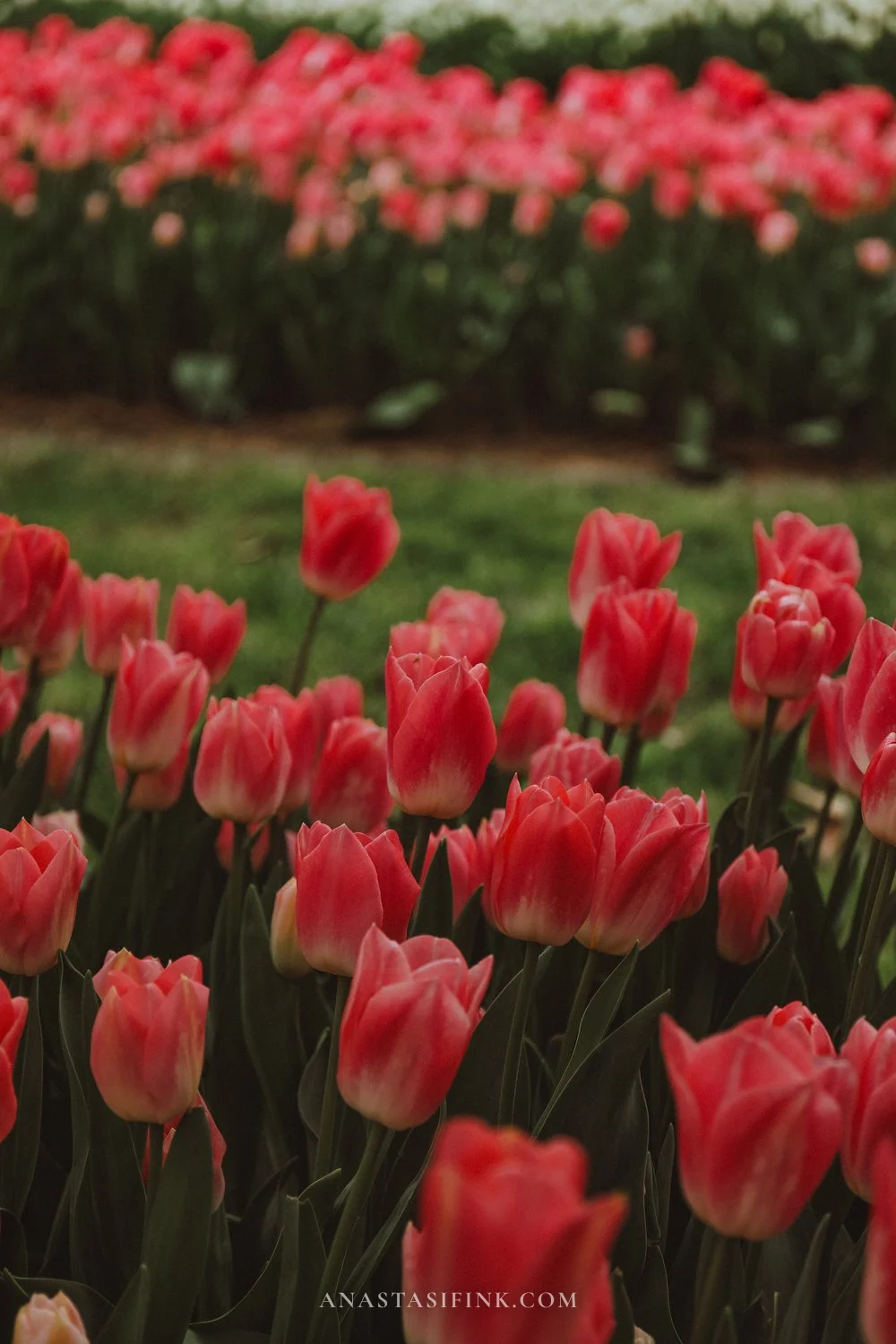 Tulips here aren’t planted in neat little beds. They fill massive fields — red, then pink, then white, then yellow. In between: old-growth trees, ponds, ducks.