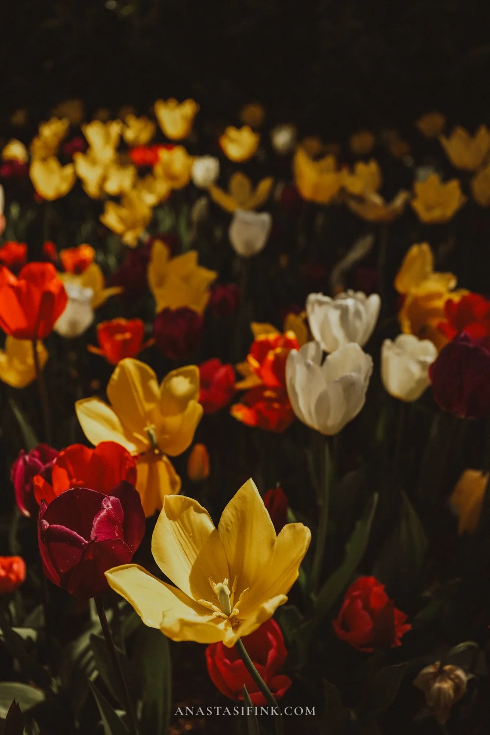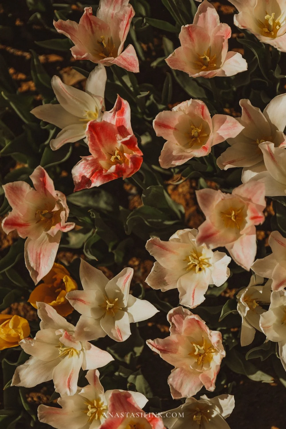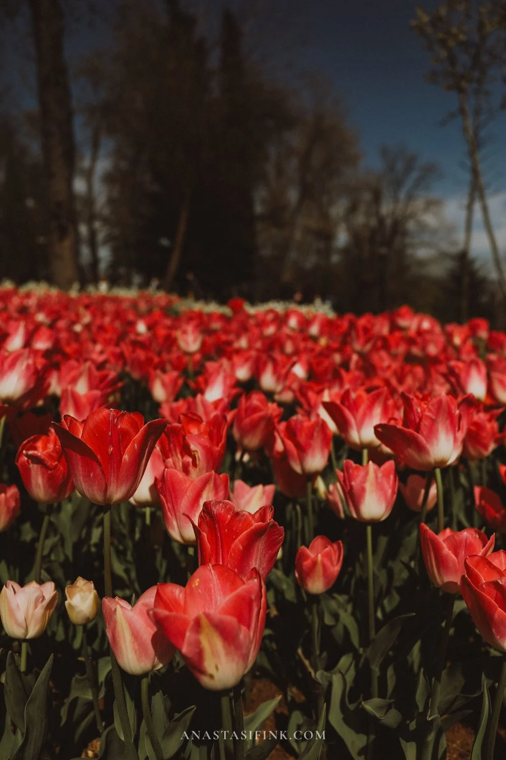 Tulips here aren’t planted in neat little beds. They fill massive fields — red, then pink, then white, then yellow. In between: old-growth trees, ponds, ducks.