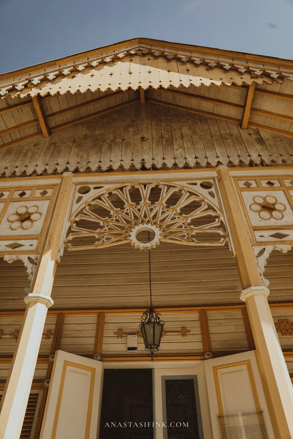 Emirgan has three historic pavilions — the Yellow, White, and Pink — built in Ottoman style. Carved wooden facades, ornate verandas. Inside, there are cafes where you can sit down for Turkish tea.