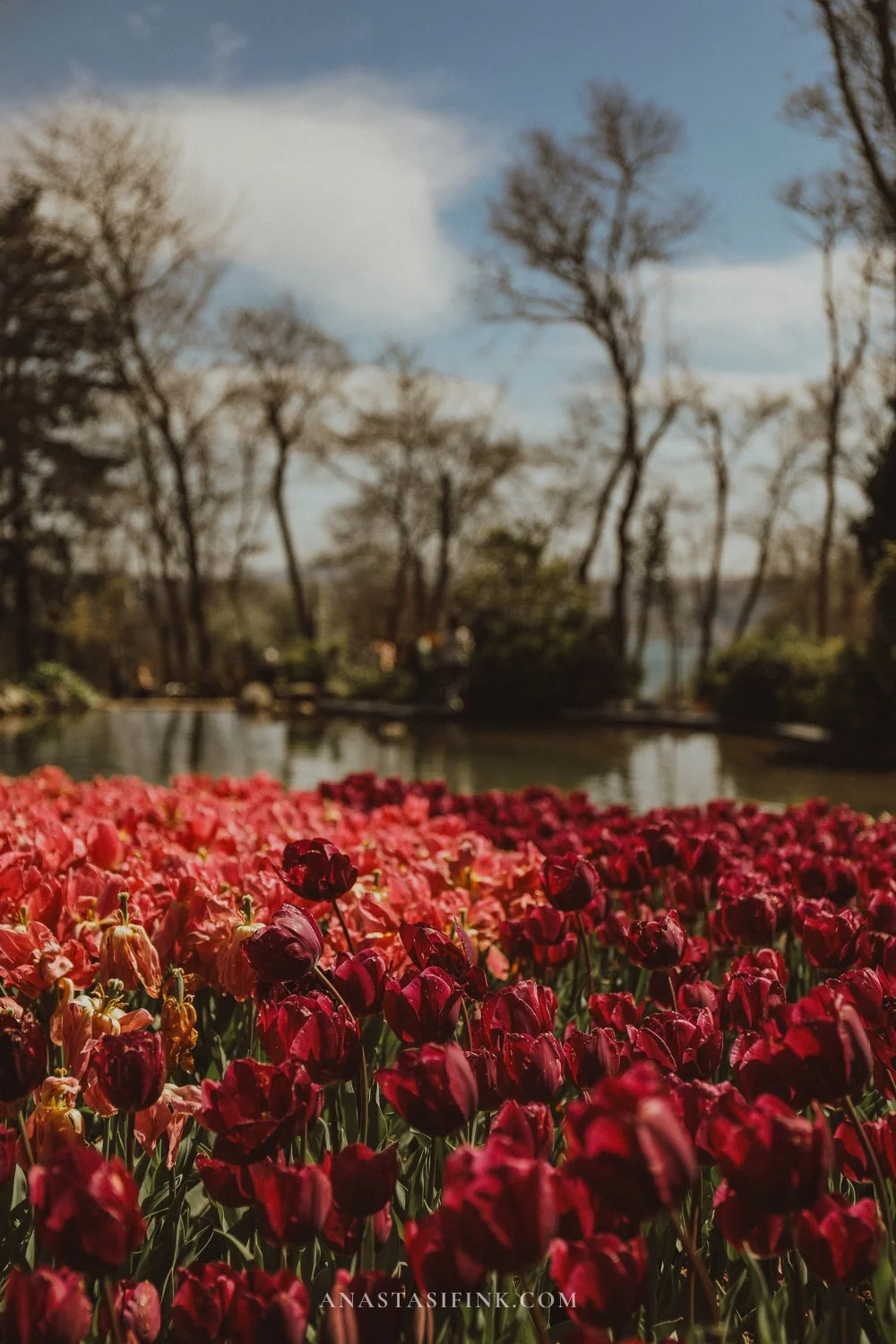 Deep crimson tulips — one of dozens of red shades at Emirgan