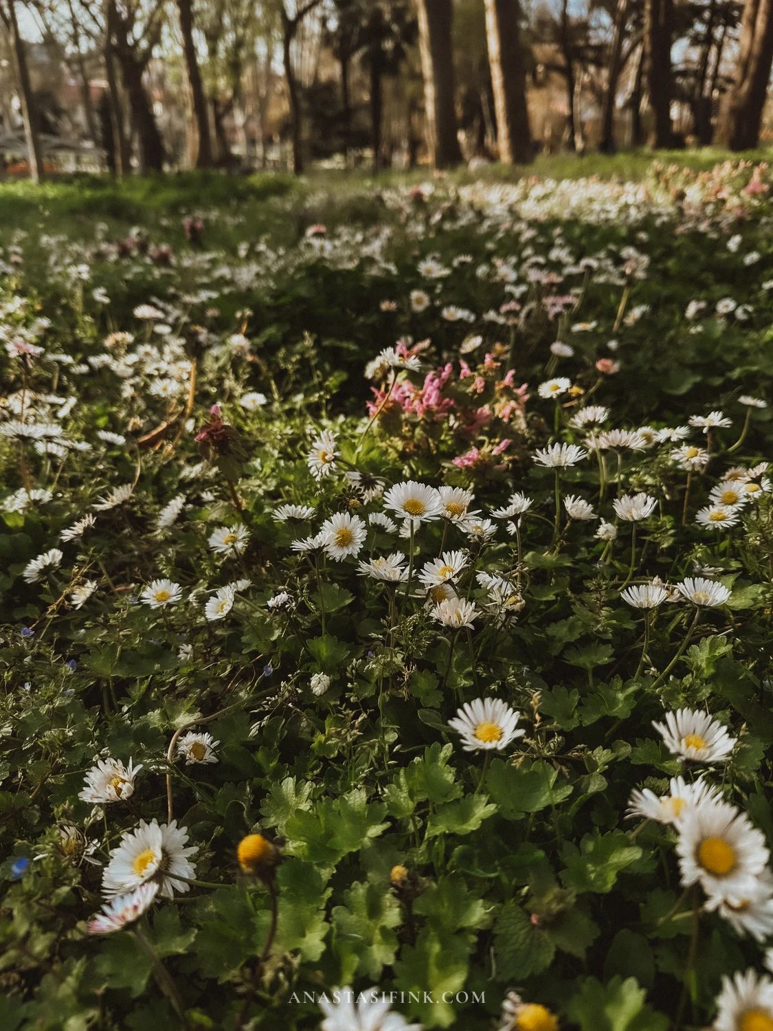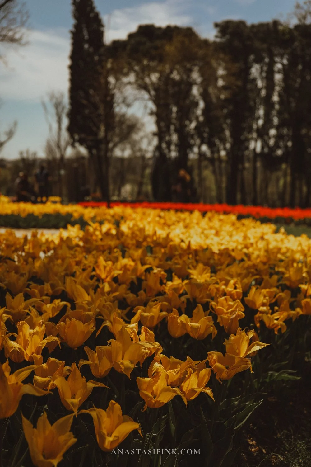 Fewer tulips than Emirgan, but they’re planted more densely and with more intention. Yellow next to purple hyacinths, old plane trees between beds, and lawns carpeted with daisies.