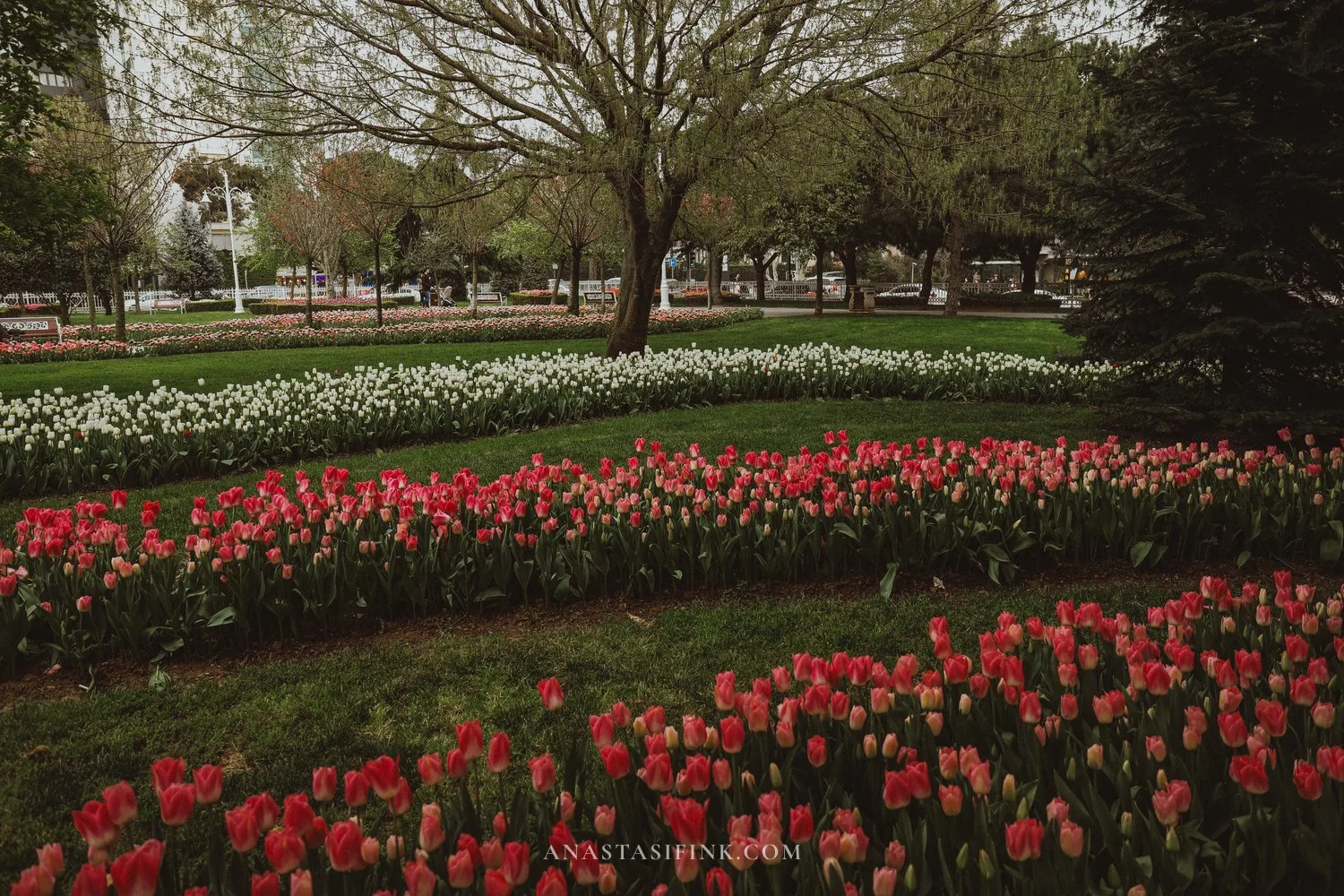 Göztepe has a different feel. The tulips don’t fill entire hillsides — instead, they’re woven between walking paths, along avenues, under tall trees. The park is smaller but more relaxed — locals come here with kids and picnic blankets. Almost no tourists.