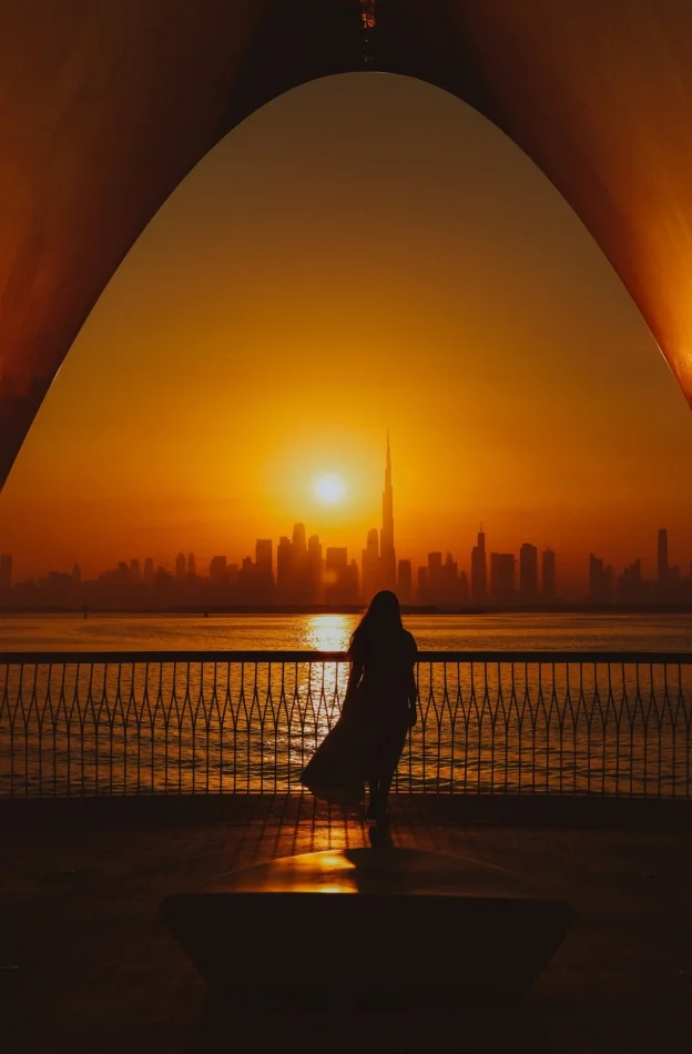 Watch the perfect sunset at Dubai Creek Harbor promenade